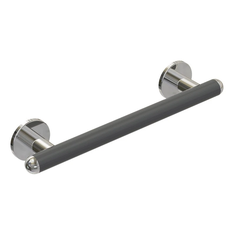 Barre fixe de sécurité droite cm. 43 en acier galvanisé Ø32mm x1,5mm avec recouvrement en poudre de polyestère antibactérien gris souris. Complète de plaques de fixation murale en acier inox AISI 304 ayant 6 trous et rosaces de finition en chromé. Série Raffaello