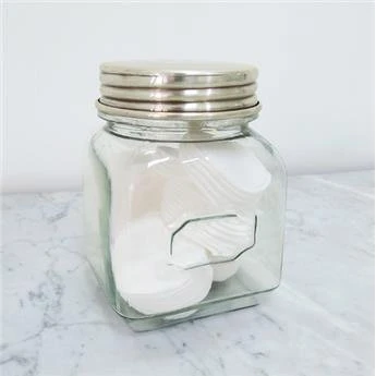 Pot à coton en verre avec couvercle Maison Tilleul. idéal pour décorer une belle salle de bains. On l’imagine tout à fait dans un décor’grand hôtel’ ou esprit brocante. Le contenant est réalisé en verre lisse. tandis que le couvercle est en laiton argenté. Un bel objet aux finitions qualitatives. qui gardera sa belle patine dans le temps grâce à un traitement anti-ternissement appliqué en finition.