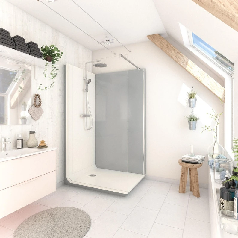 Cabine De Douche L.120 X L.90 Cm Blanc, Verre Transparent, Serenity Ciment