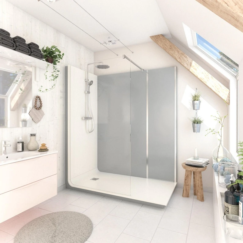 Cabine De Douche L.170 X L.80 Cm Blanc, Verre Transparent, Serenity Ciment