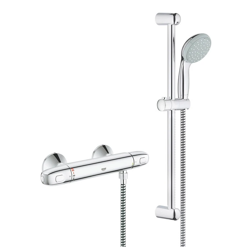 GROHE CoolTouch Minimise les risques de brûlures GROHE StarLight chrome éclatant et durable GROHE MetalGrip poignées ergonomiques en métal GROHE SafeStop butée à 38°C GROHE SafeStop® Plus butée à 38°C + limiteur de température intégré à 50°C max GROHE TurboStat cartouche C3 – régulation thermostatique quasi-instantanée Poignée de débit avec touche éco et butée éco réglable séparément