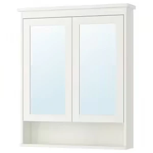 Une porte miroir installée au-dessus de l’élément lavabo facilite la préparation du matin et permet d’agrandir et d’illuminer la pièce. Facile à coordonner avec une porte ou une face de tiroir ENHET et tous les autres meubles que vous possédez déjà.