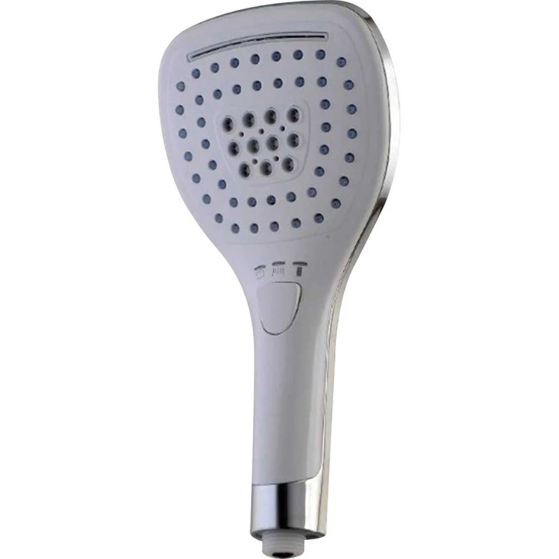 * Tête : – largeur : 123 mm – nombre de jets : 3 (pluie, massage, lamellaire) – anti-calcaire : picots souples * Corps : matière ABS * Sélecteur de jet par bouton poussoir * Résistance renforcée à la corosion * Économie d’eau : régulateur de débit 8L/mm intégré dans le manche * Raccordement : M.1/2 (15×21) standard