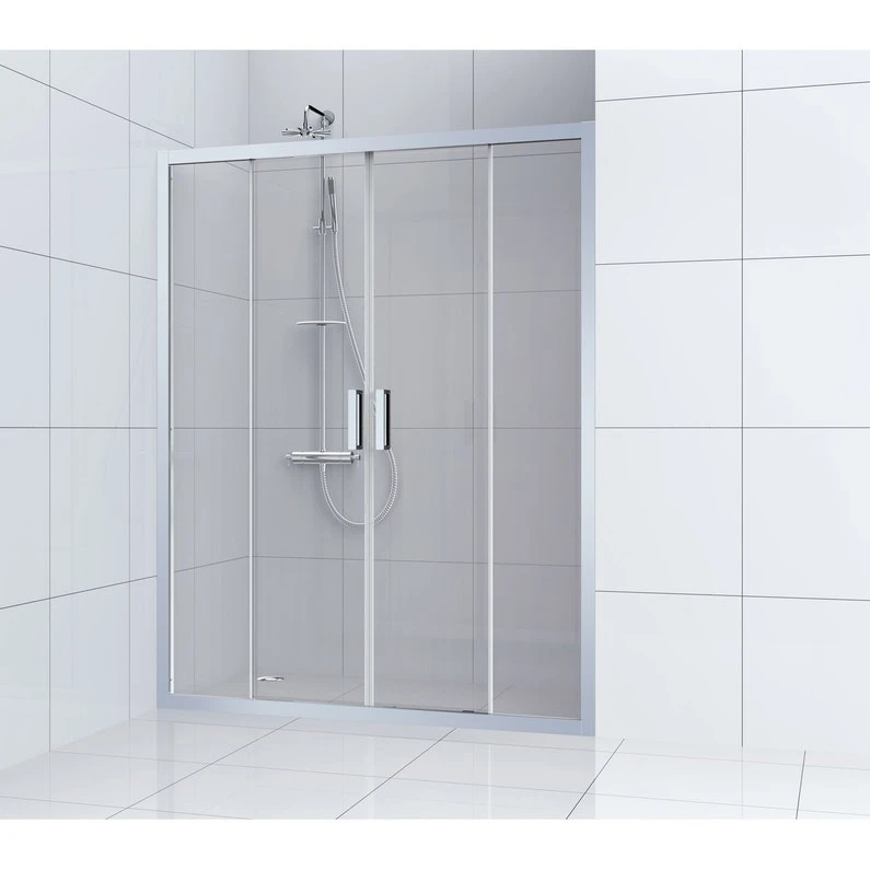 Fermeture progressive de la porte avec amortisseur . Poignée intérieure/extérieure. Entretien facilité grâce aux roulettes déclipsables et au traitement sur le verre.
