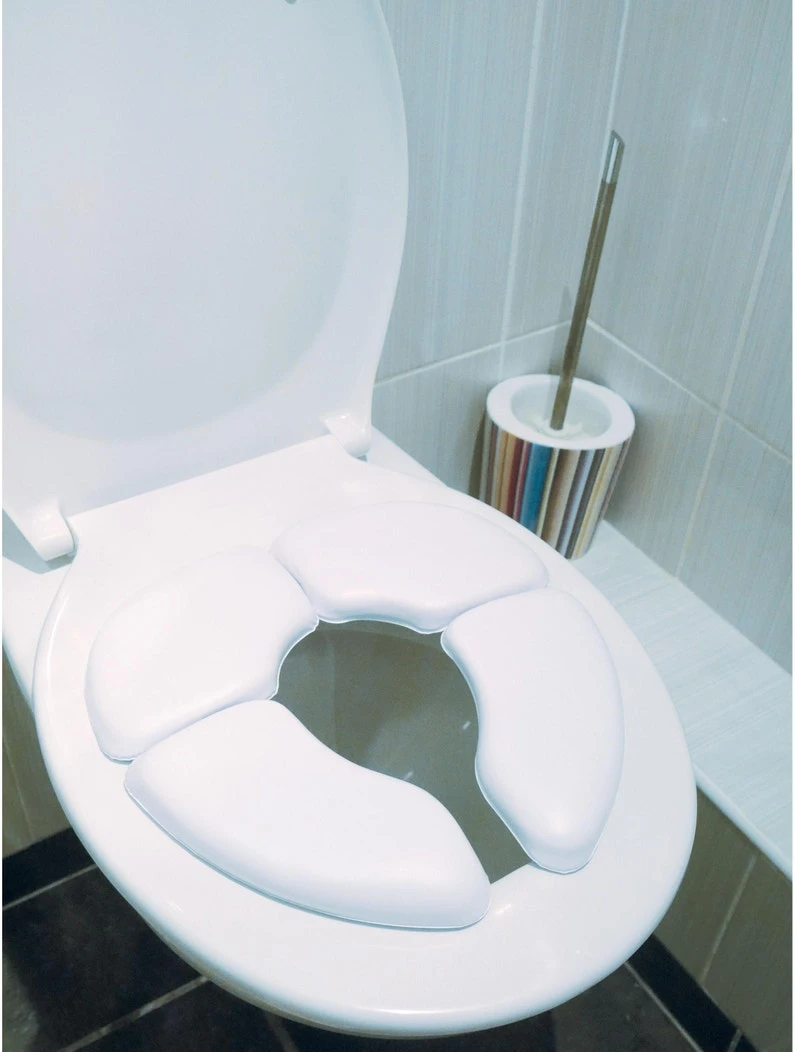 Réducteur de toilette pliant. S’adapte sur les toilettes standard et les plus allongés. Confort et sécurité pour les plus petits grâce aux pattes de fixation et son assise moelleuse et rembourrée. Réducteur pliable pour être emmener partout en voyage grâce housse de transport lavable incluse: la garantie d’une hygiène otpimale en tout lieu.
