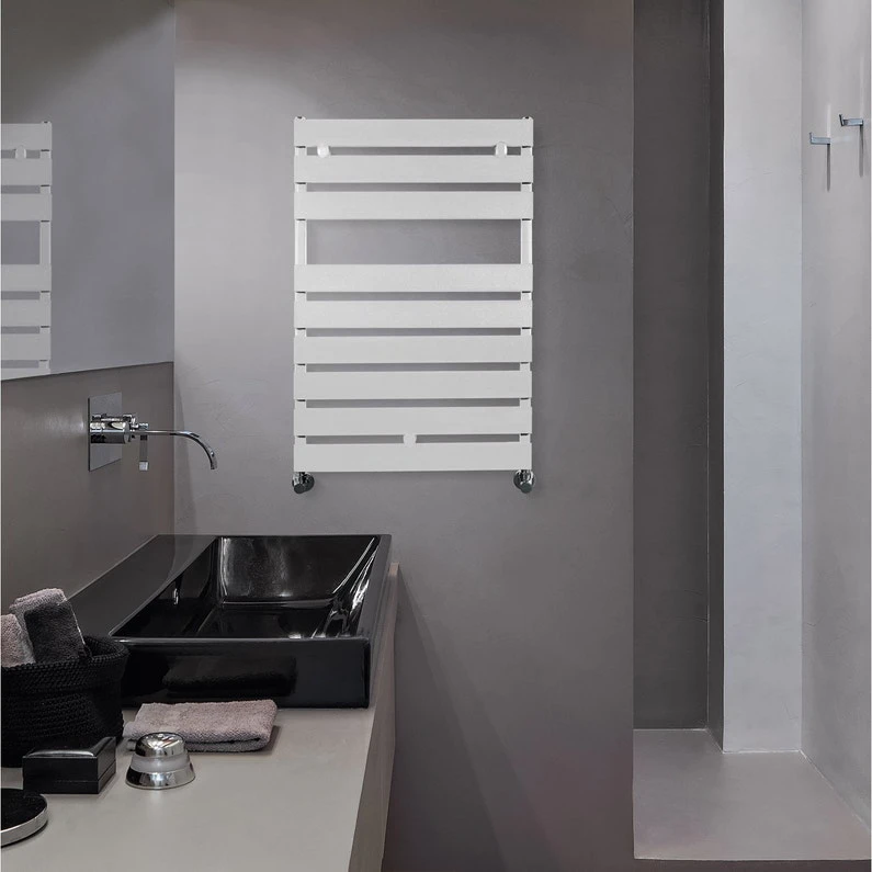 Sèche-serviettes design en aluminium qui lui confère une ligne élégante. Rapidité de montée en température. Livré avec fixations et bouchon purgeur